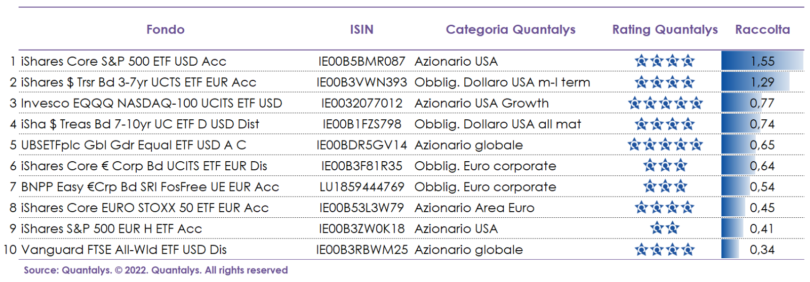 Top 10 degli ETF per Raccolta netta a 1 mese in miliardi di Euro