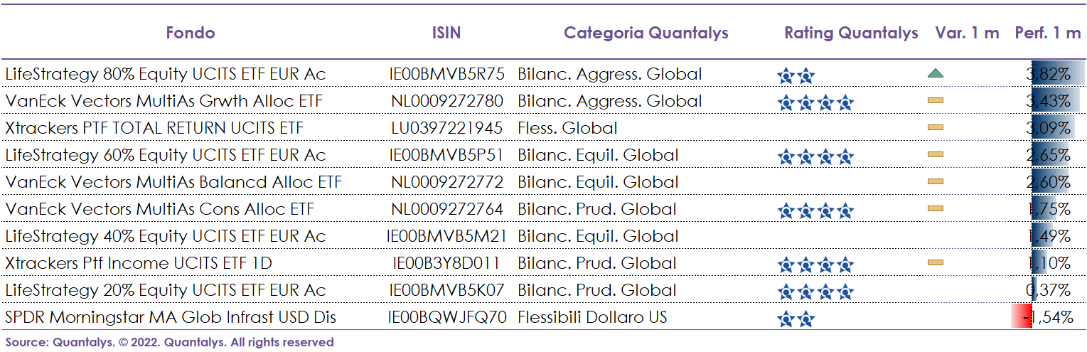 Top 10 degli ETF Flessibili e Bilanciati per performance a 1 mese