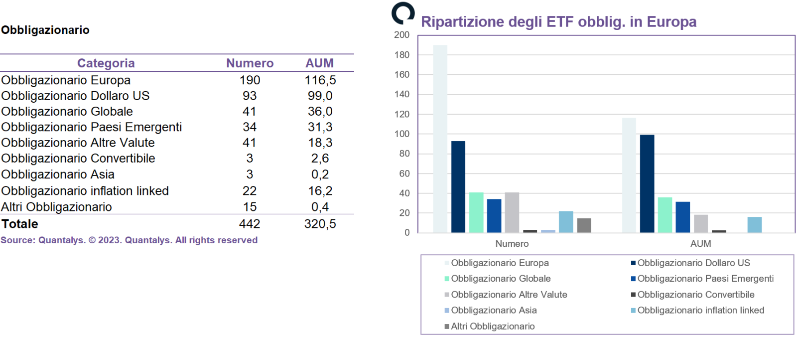 Ripartizione degli ETF in Europa per categorie d’investimento