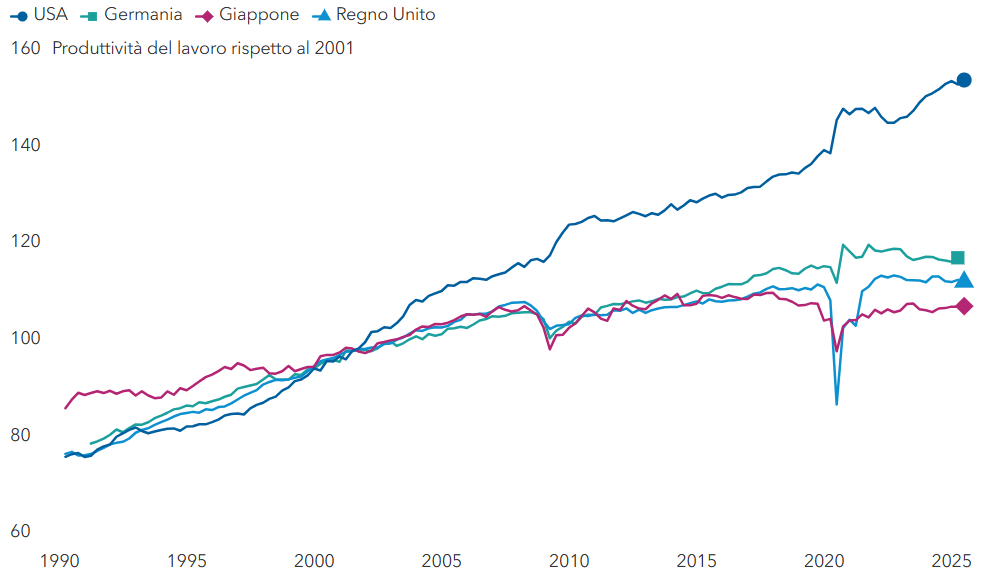 Gli Stati Uniti ampliano il vantaggio in termini di produttività del lavoro