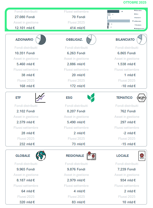 © 2025 Quantalys. Tutti i diritti riservati. Le informazioni fornite sono di proprietà di Quantalys Italia Harvest Group; possono non essere esaustive e non costituiscono raccomandazione o sollecitazione all’investimento. Quantalys Italia Harvest Group non si assume alcuna responsabilità per le eventuali conseguenze derivanti da decisioni assunte o iniziative intraprese sulla base delle informazioni riportate nel presente documento. Tutti i dati sono aggiornati alla data indicata e attribuiti a Quantalys Italia Harvest Group, salvo diversa indicazione.
